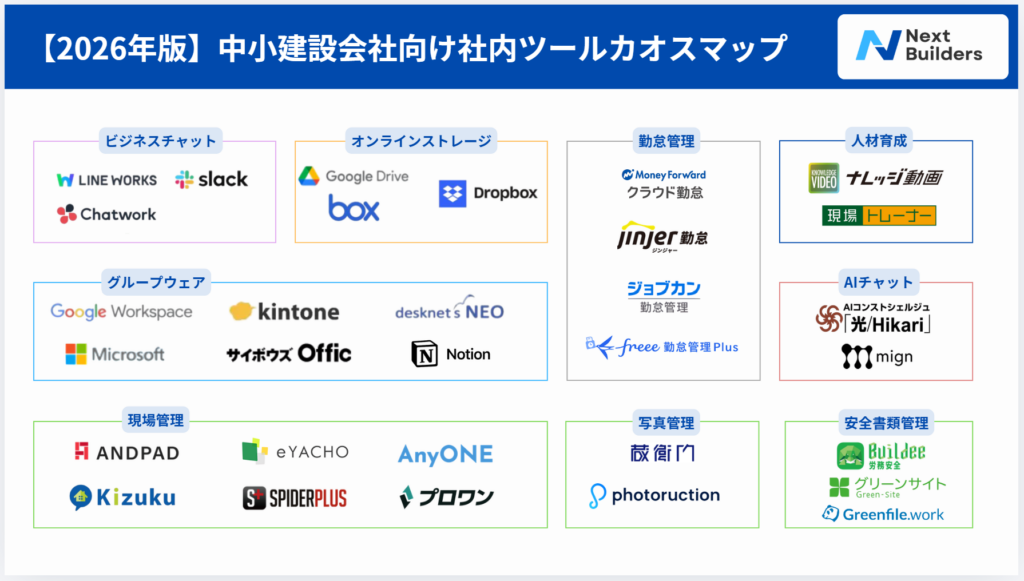 2026年の今だからこそ導入したい、低コストかつ中小建設会社でも取り入れやすいツールを厳選してご紹介します。