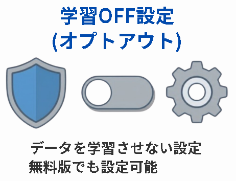 オプトアウト設定か法人プラン契約で、入力データが学習されない環境を整える。