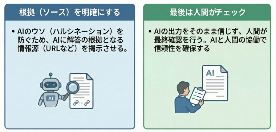 このひと手間を省かなければ、ハルシネーションによるトラブルはほぼ防げます。